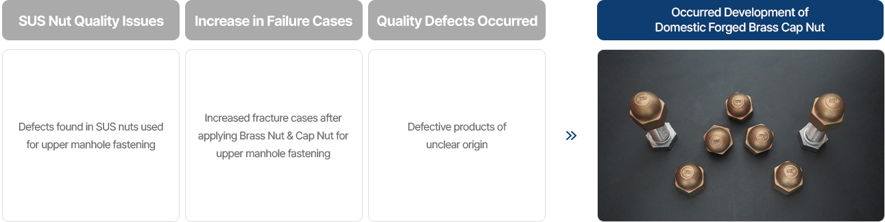 Hyowon HM applied its patented forging process to develop Cap and Hex Nuts that significantly improve durability and structural reliability, effectively eliminating galling problems.